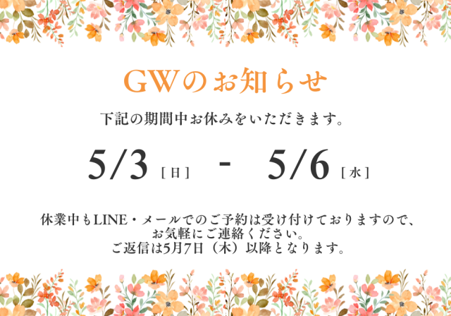 しかし、LINEやメールでのご予約は可能ですので、お電話がお手間の方は是非そちらを利用ください。3日ほど候補日をいただけるとスムーズにご案内できるかと思います。